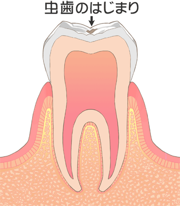 エナメル質に小さな穴の開いた虫歯