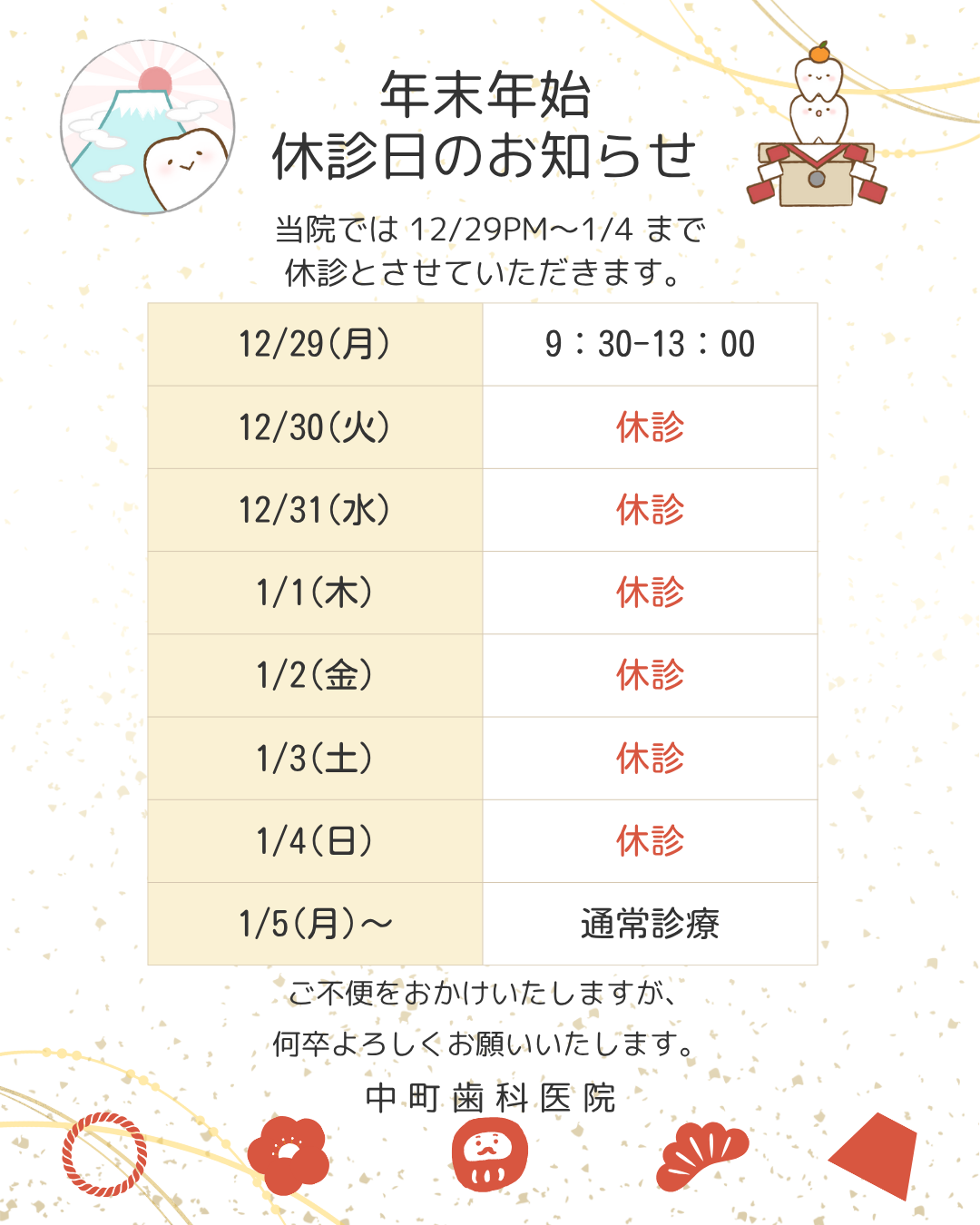 何か気になることがございましたら、年内の診療中にぜひご相談ください🦷