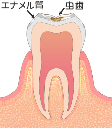 エナメル質に小さな穴の開いた虫歯